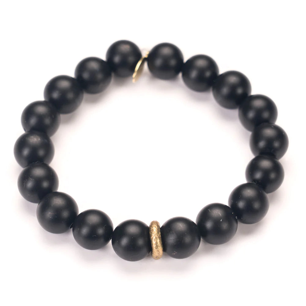 Onyx Crystal Bracelet | Matte + Brass Boho Ring